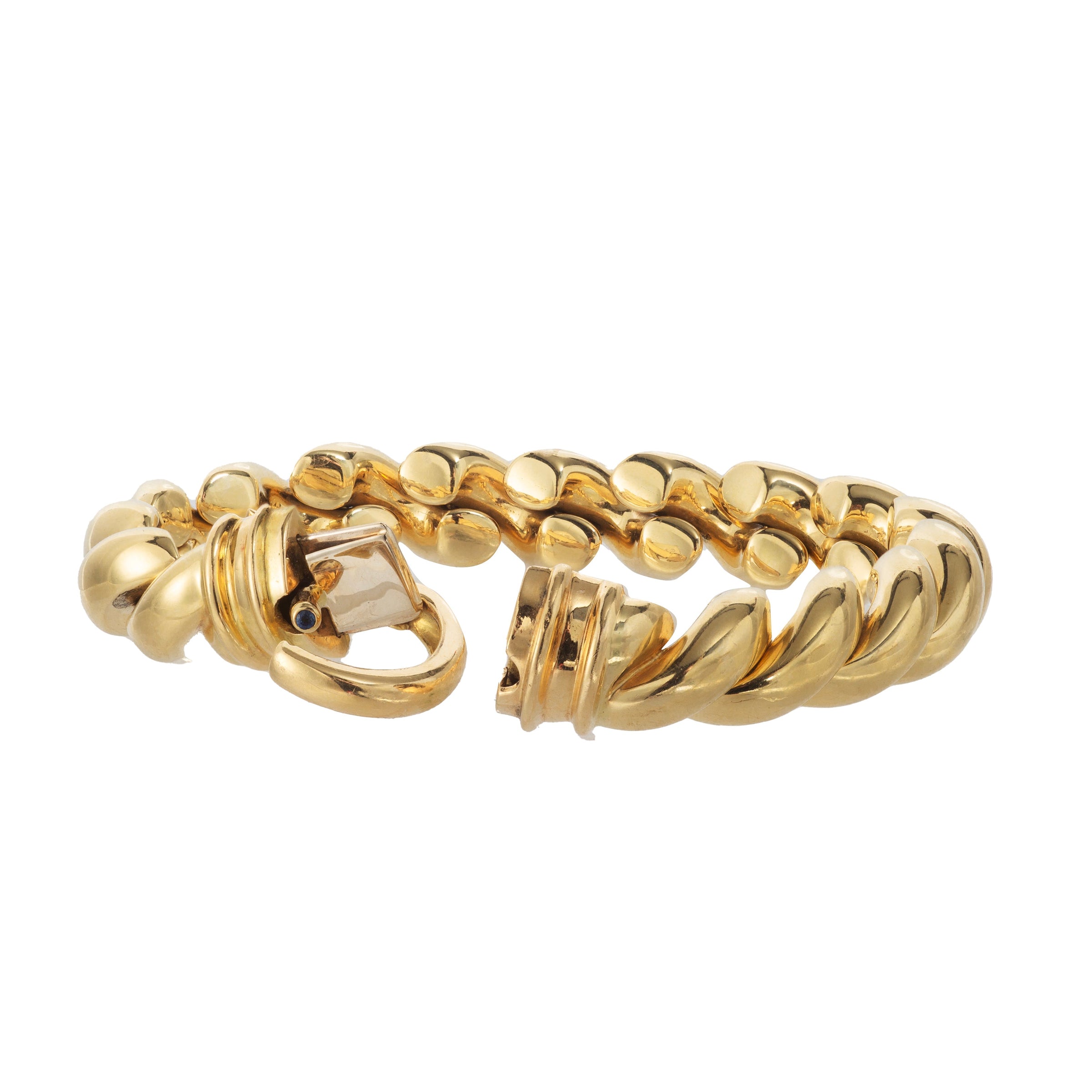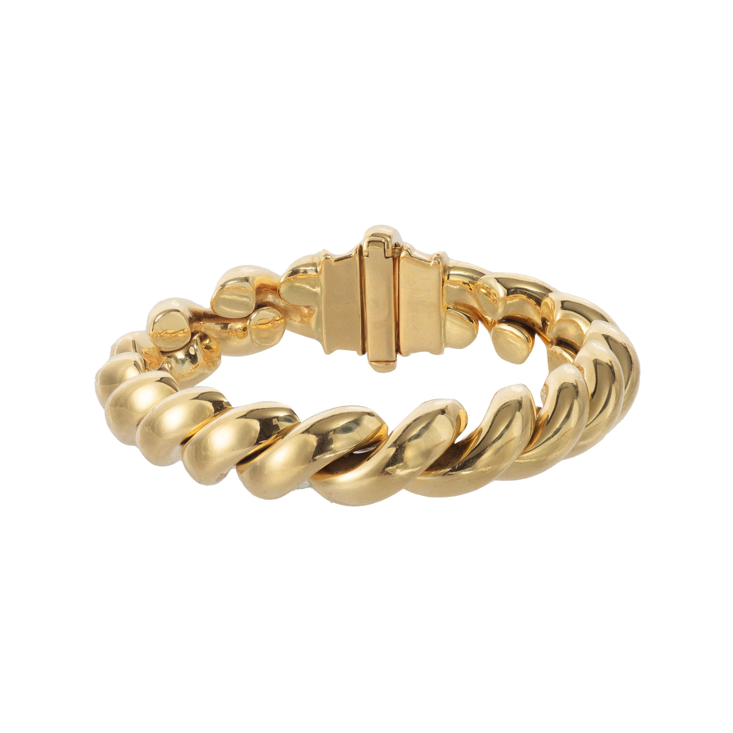 Its softly twisted form is bold yet refined - a clean, sculptural line typical of the house’s goldwork in this period.