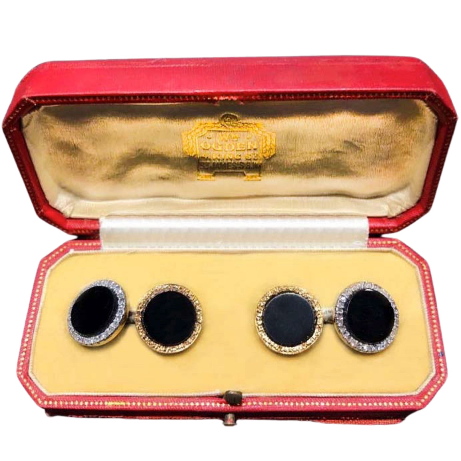 Art Deco Onyx & Diamond Cufflinks in Platinum & 18ct Gold | French c.1920s